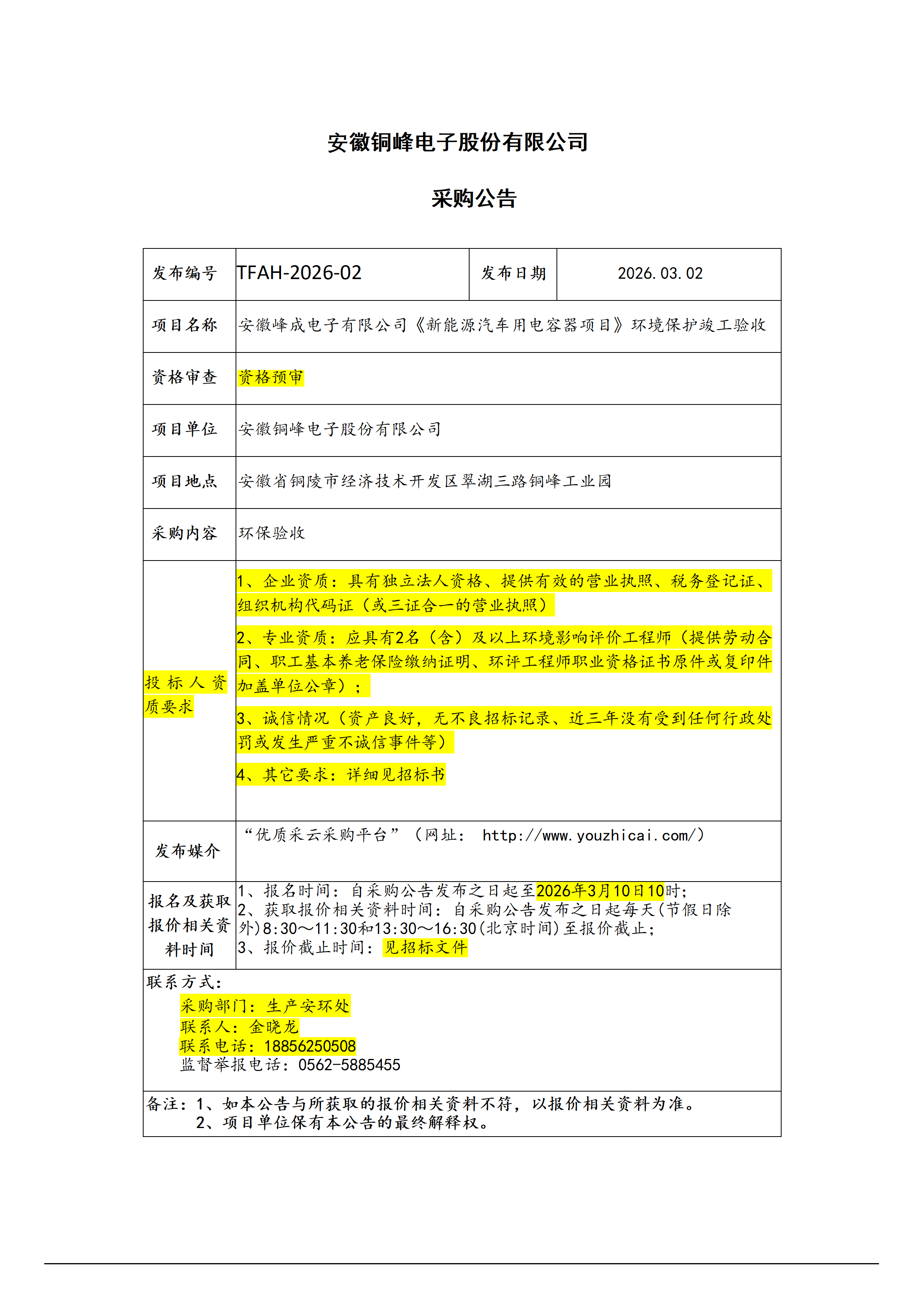 安徽銅峰電子股份有限公司 (項(xiàng)目環(huán)保驗(yàn)收招標(biāo)公告 )_01