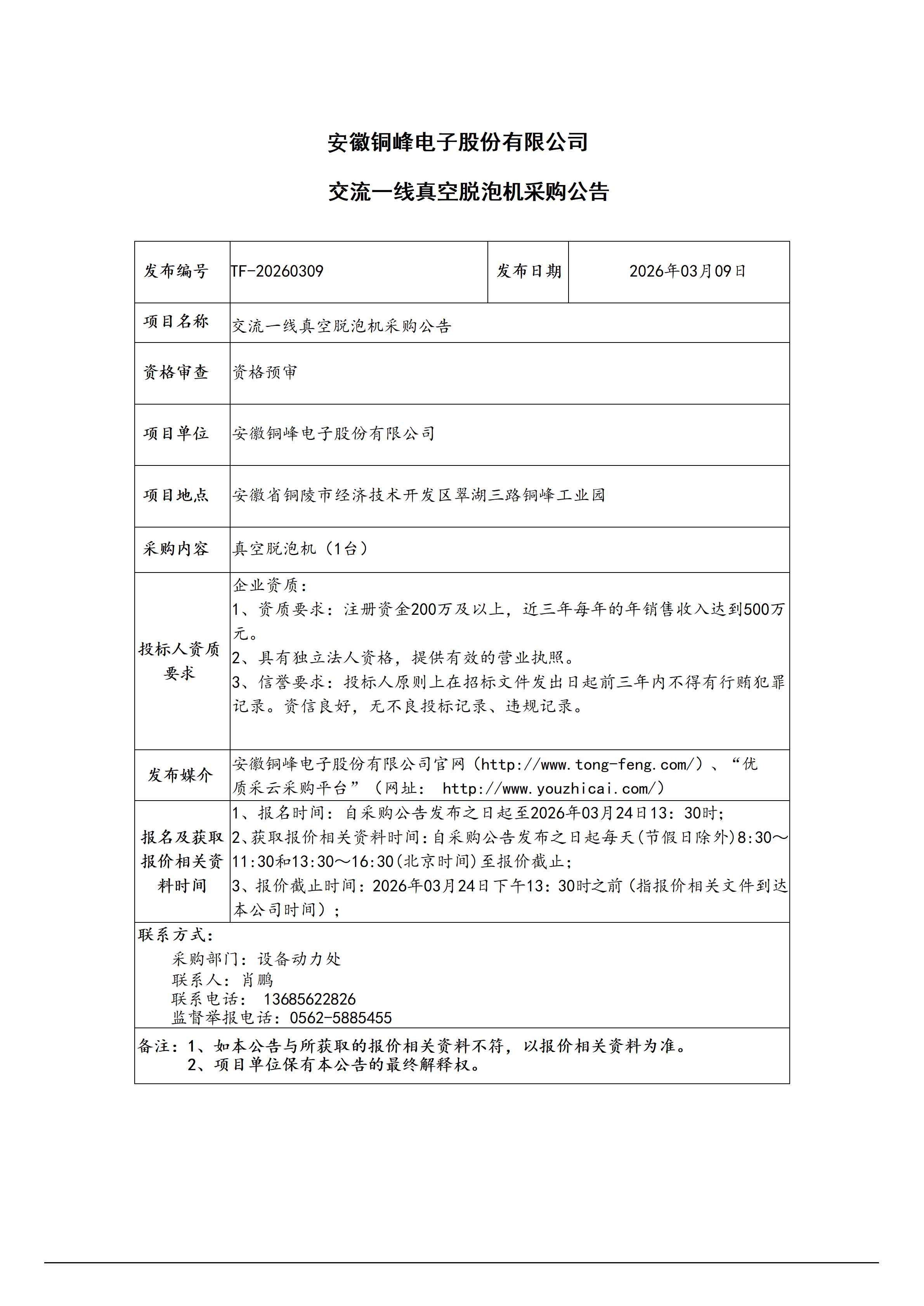 安徽銅峰電子股份有限公司 (新一線電動登高車采購招標(biāo)公告)_01