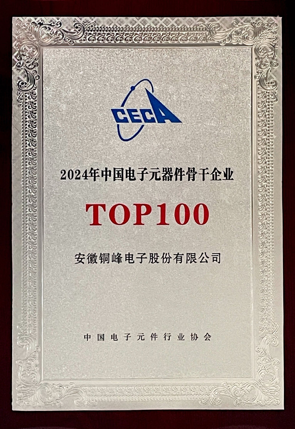 公司獲評(píng)2024年中國(guó)電子元器件骨干企業(yè)TOP100榮譽(yù)稱號(hào)