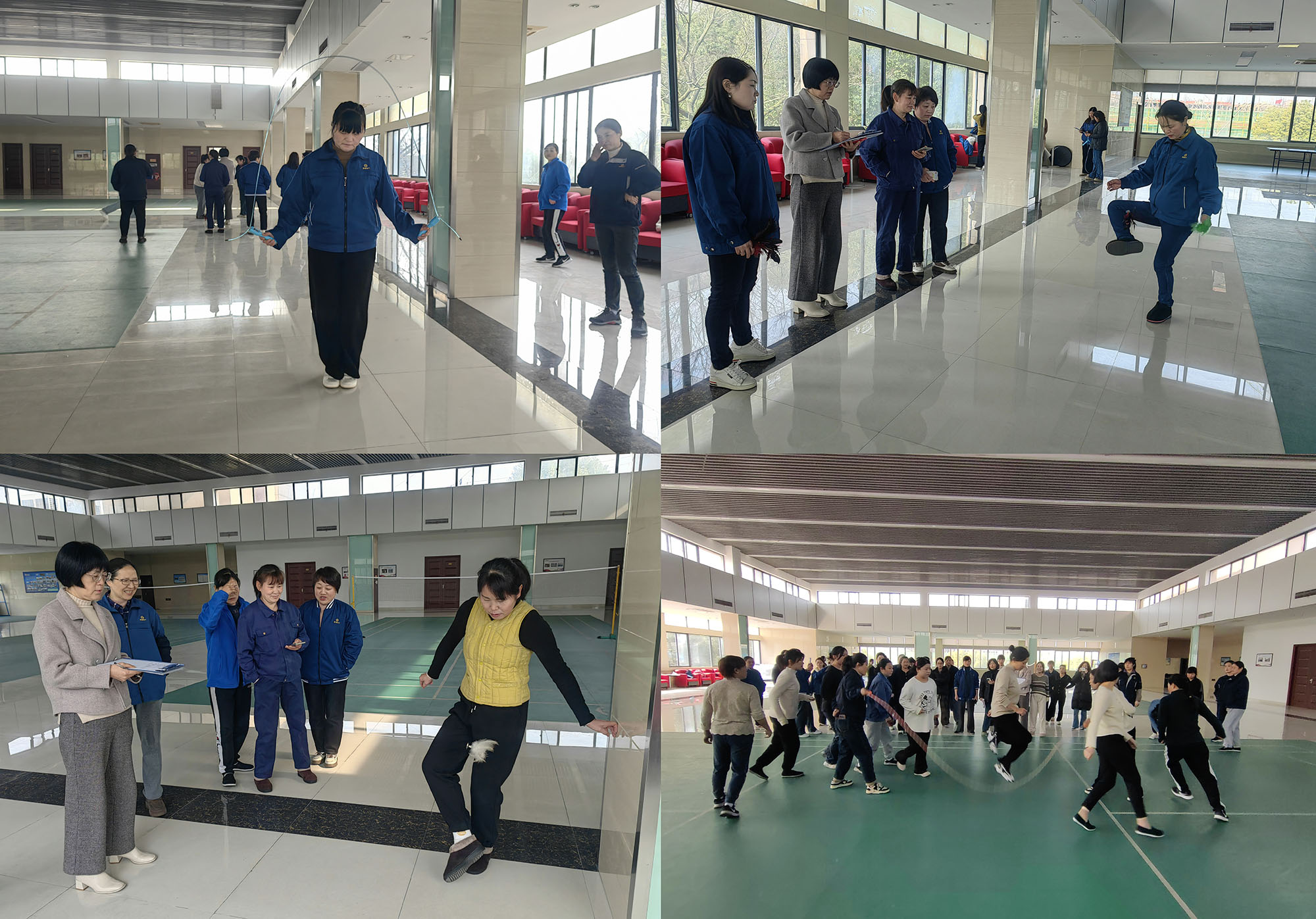 當日上午,女工文體活動在一片熱烈的氛圍中拉開帷幕,吸引了來自公司機關(guān)及生產(chǎn)一線的 50 余名女職工踴躍參與。在單人跳繩比賽中,女職工們身輕如燕,腳尖快速點地,跳繩在她們手中飛速旋轉(zhuǎn),令人目不暇接,現(xiàn)場歡聲笑語此起彼伏。踢毽子比賽同樣精彩紛呈,大家各顯神通,毽子在她們腳邊有節(jié)奏地跳動,展現(xiàn)出靈動的身姿。而 “十人八字” 集體跳繩項目更是將活動推向高潮。隨著裁判一聲令下,跳繩比賽正式開始,兩位甩繩選手動作整齊劃一,一根長繩快速旋轉(zhuǎn),隊員們依次進入跳繩區(qū)完成跳躍。這一項目不僅考驗個人的反應(yīng)速度與身體協(xié)調(diào)性,更需要團隊之間的默契配合,充分展現(xiàn)了女職工們團結(jié)拼搏的精神風貌。