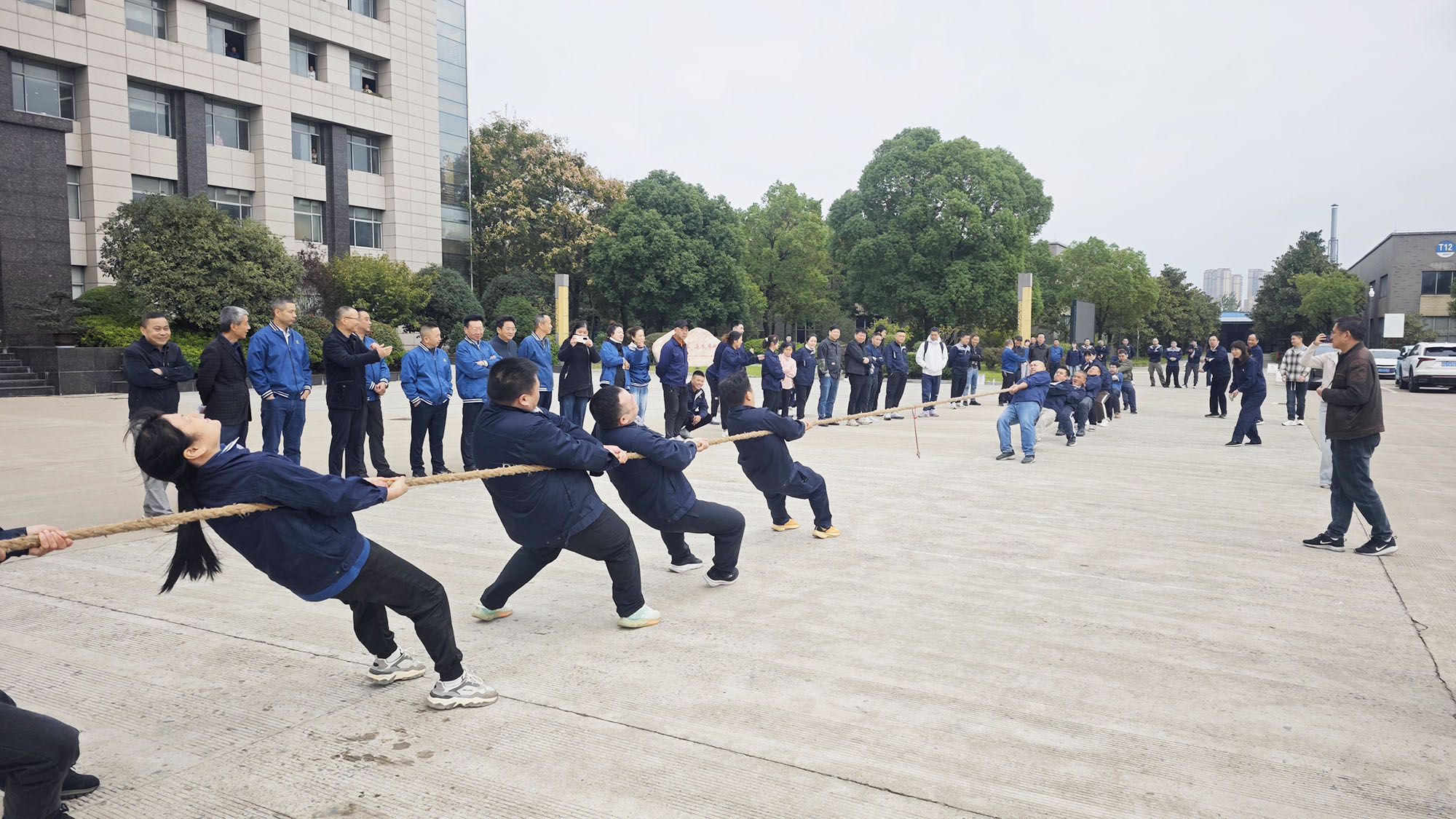 在拔河項(xiàng)目中,隊(duì)員們將彼此的力量與長(zhǎng)繩融為一體,身體后傾成整齊的斜線(xiàn),雙腳如釘般扎根地面,將團(tuán)隊(duì)的合力凝聚在手中的繩索之上。
